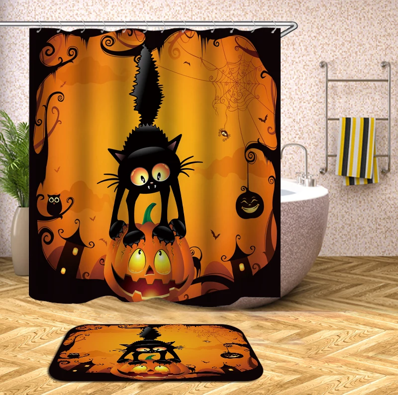 Best Quality Bathroom Shower Curtain Halloween Bat Pumpkin Lantern Waterproof Bath Curtains for Bathtub Bathing