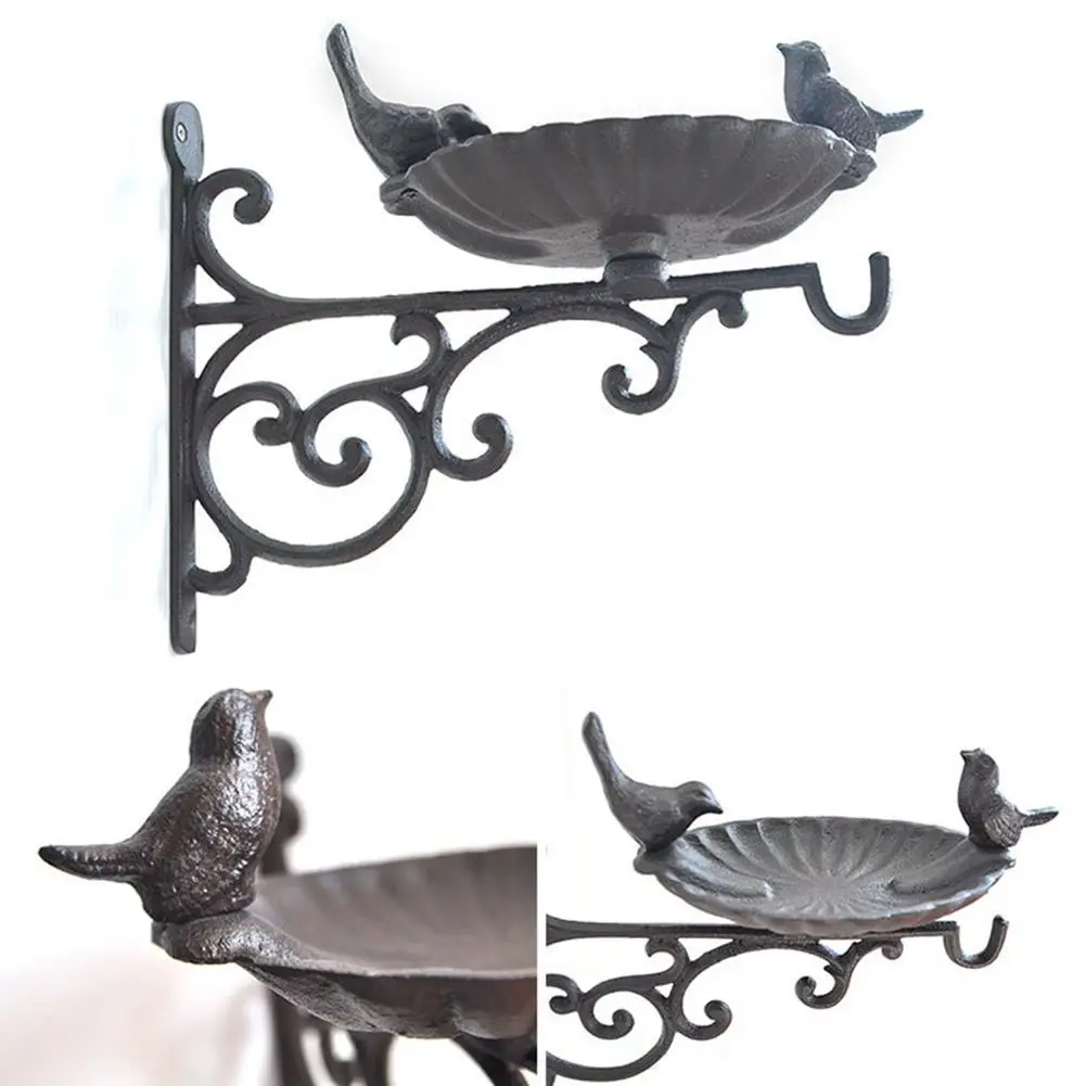 Garden Cast Iron Hanging Basket Bird Bath Wall Mounted Hook Bracket Decoration Bird Bath/Feeder Wit