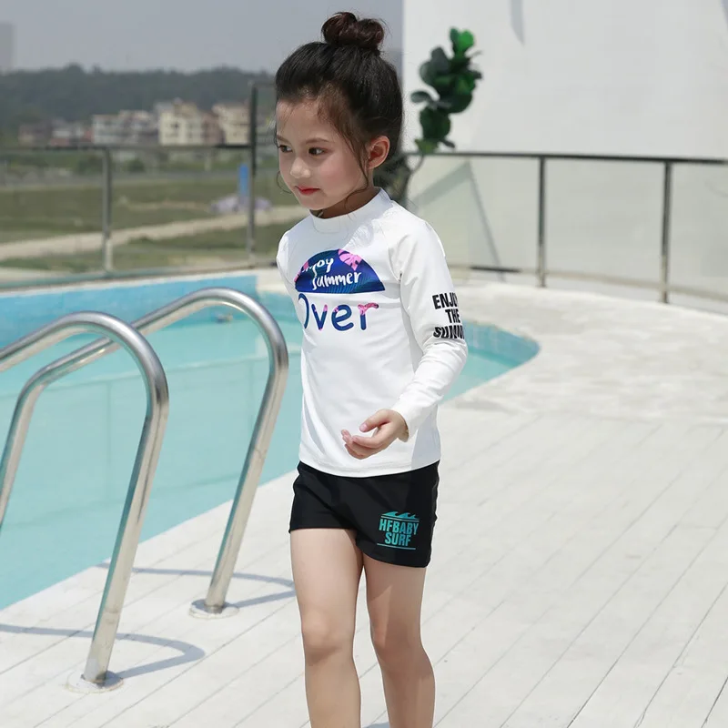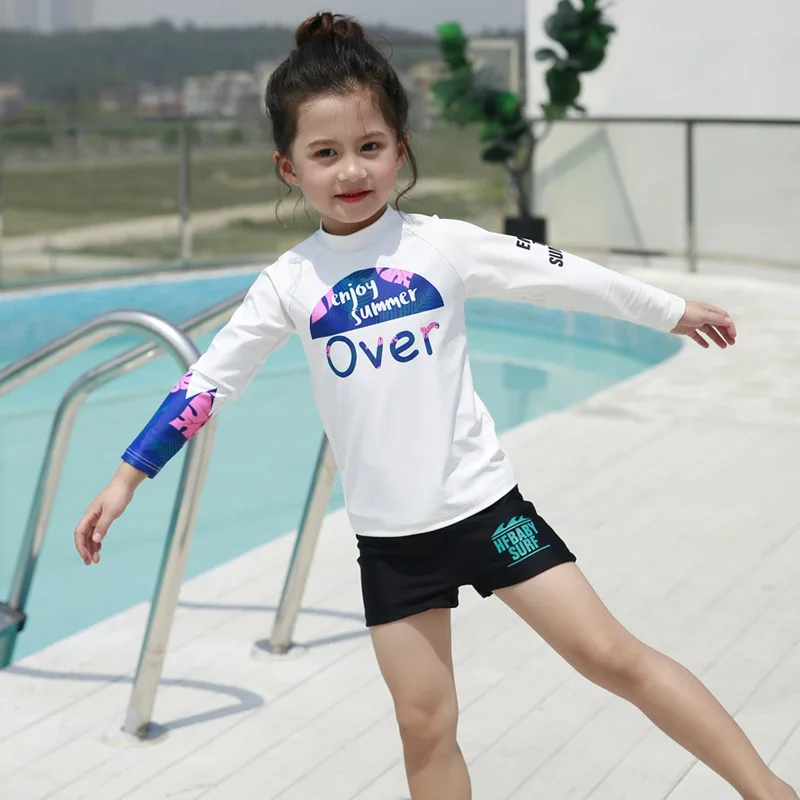BEST 3 Pieces Long Sleeve Print Girls Swimsuit Children's Swimwear White Boys Swimsuit Kids Bathing Suit