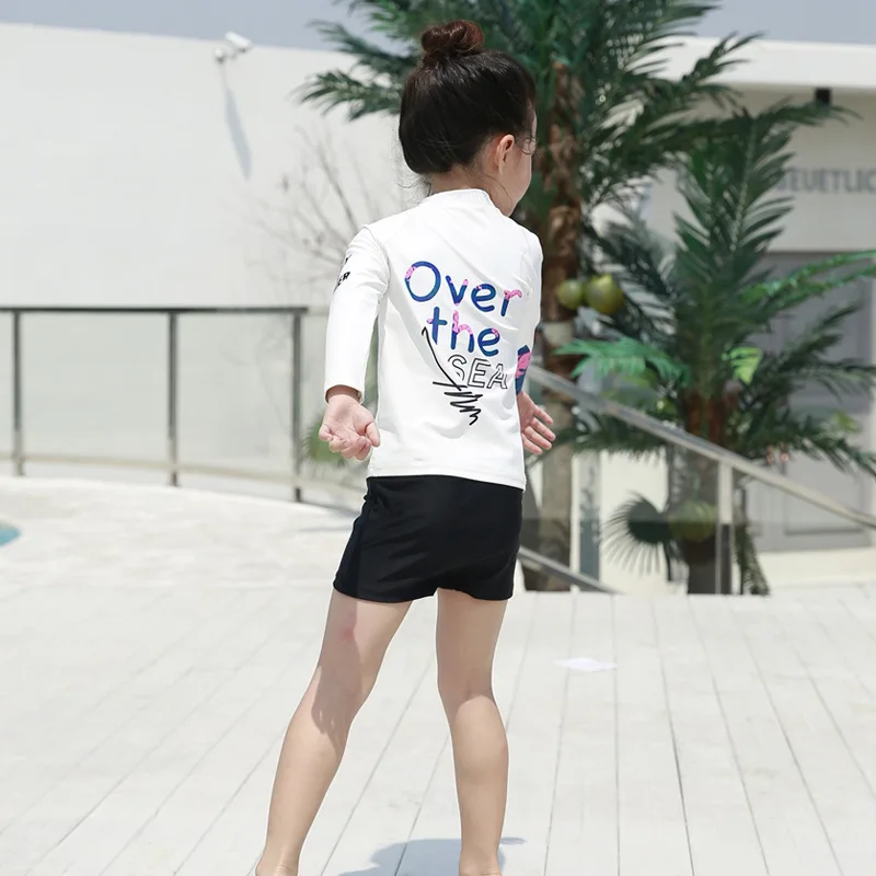 3 Pieces Long Sleeve Print Girls Swimsuit Children's Swimwear White Boys Swimsuit Kids Bathing Suit