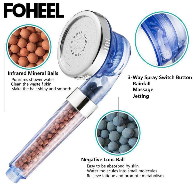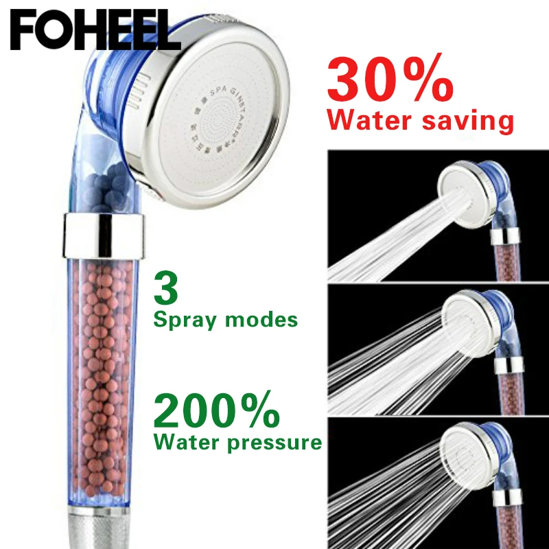 FOHEEL shower head hand shower adjustable 3 mode high pressure shower head water saving SPA bathroo