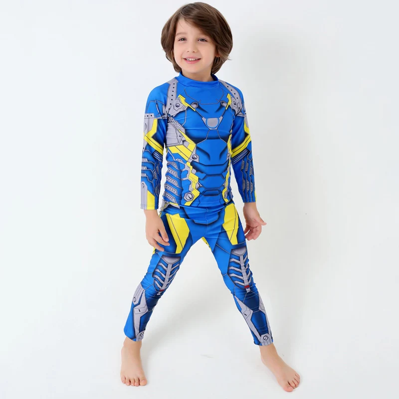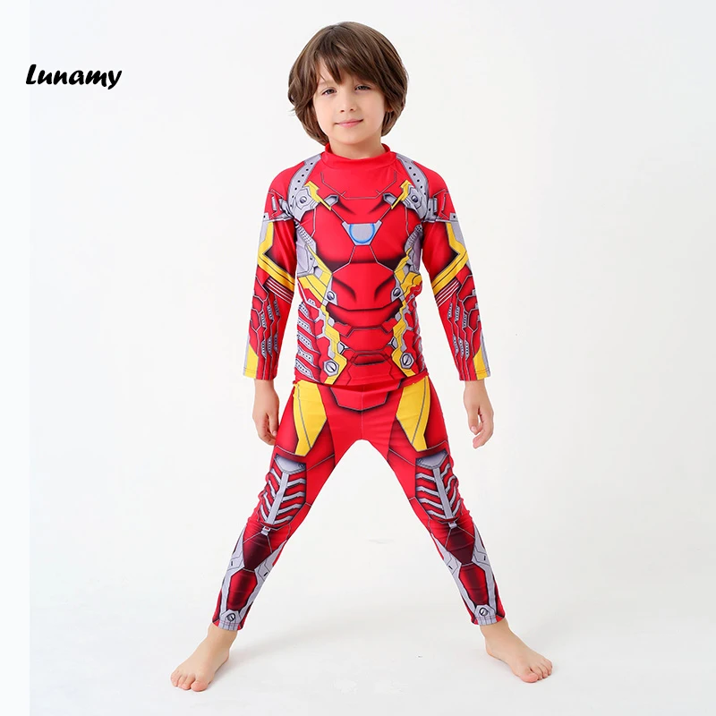 2019 Handsome Children/Kids Swimwear Iron Man Print Long Sleeves Trousers Two Piece Swimwear For Sp