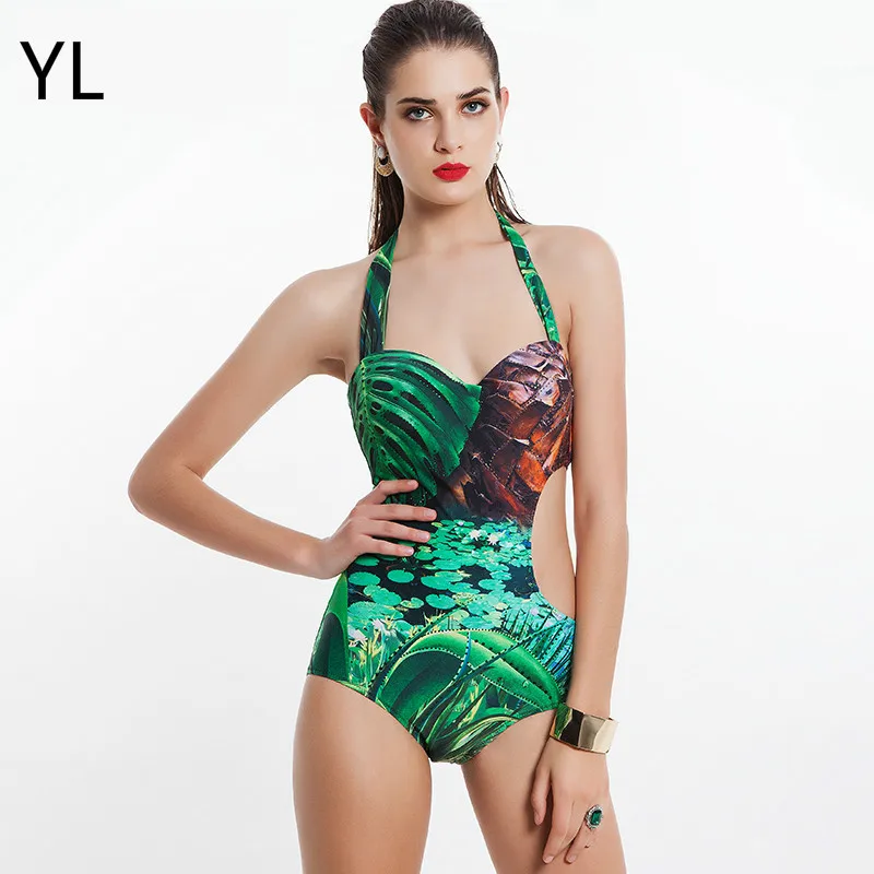 HOT Sale Brand Leaf Print Swimwear Women One Piece Swimsuit Sexy Push Up Bathing Suit High Quality