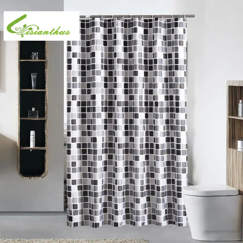 Best Seller Waterproof Shower Curtain with 12 Hooks Mosaic Printed Bathroom Polyester Curtains High Quality Bat