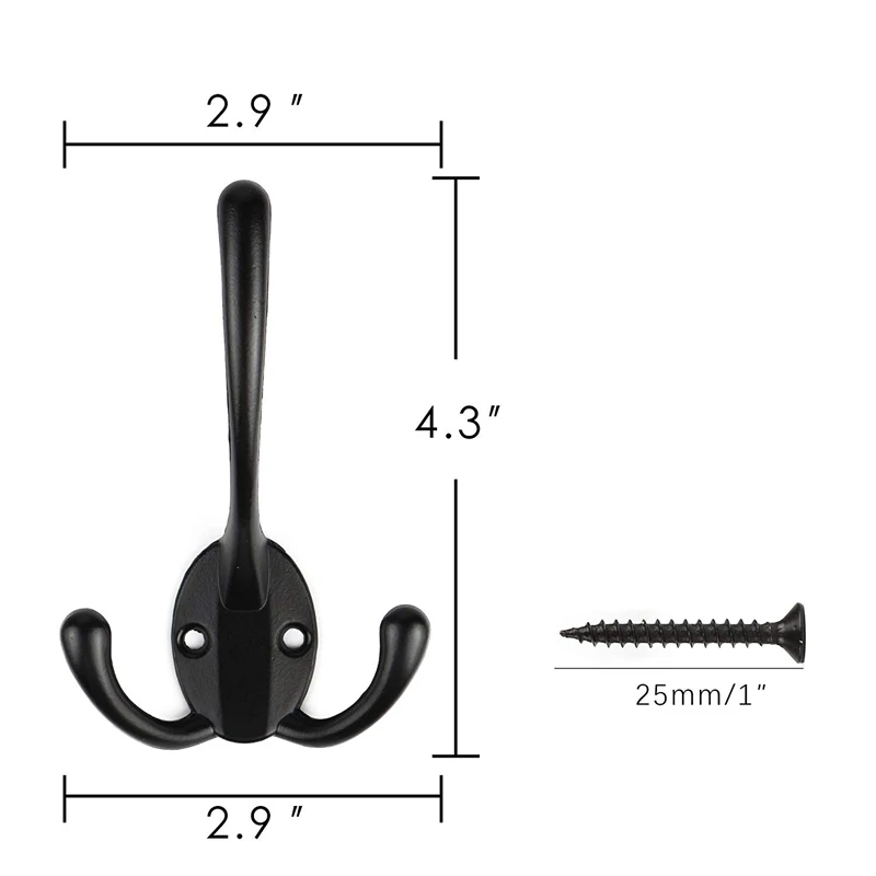 Big Heavy Duty Prongs Coat Hooks Wall Mounted Robe Hook with 16 Pieces Screws Retro Double Utility
