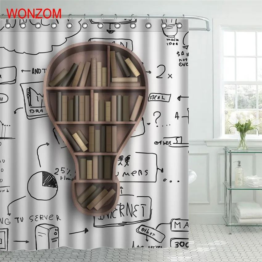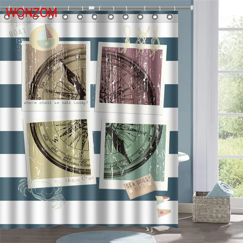 HIGH QUALITY WONZOM Bookcase Waterproof Shower Curtain Compass Bathroom Decor Police Box Decoration Cortina De B