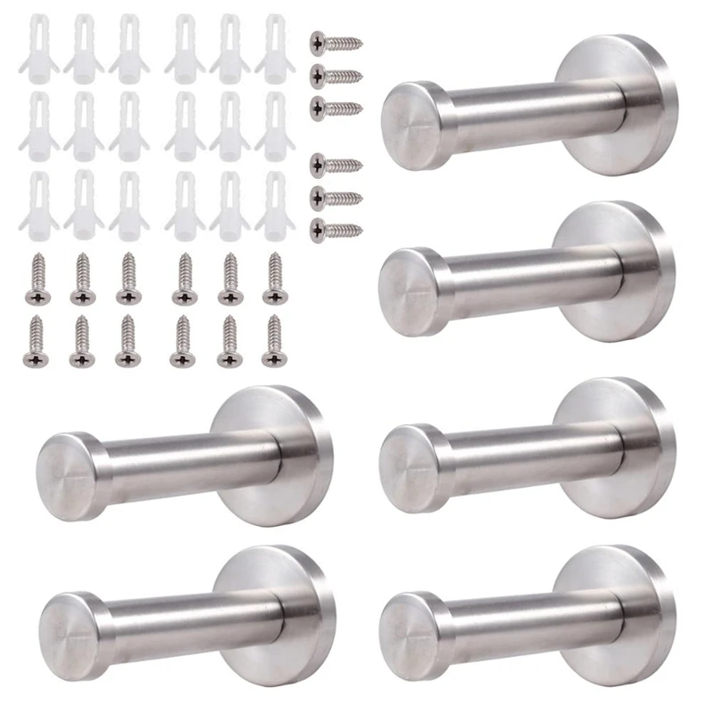 6 PCS for Stainless Steel Wall-Mount Towel Hook Coat Hanger for Bathroom Hanger for Heated TOWEL Ba