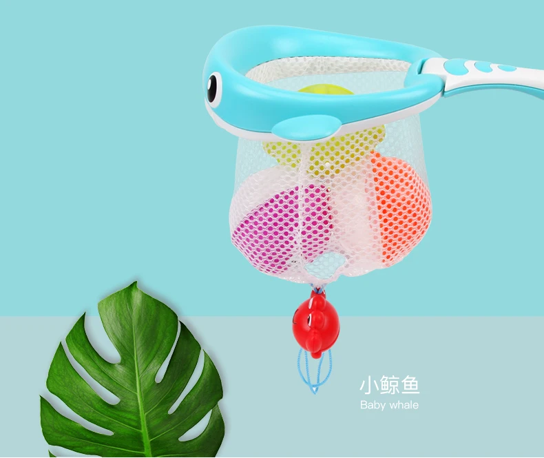Beiens Baby Bathing Toys Shark or Whale Fishing Net and Colorful Soft Floating Rubber Sound BathToy