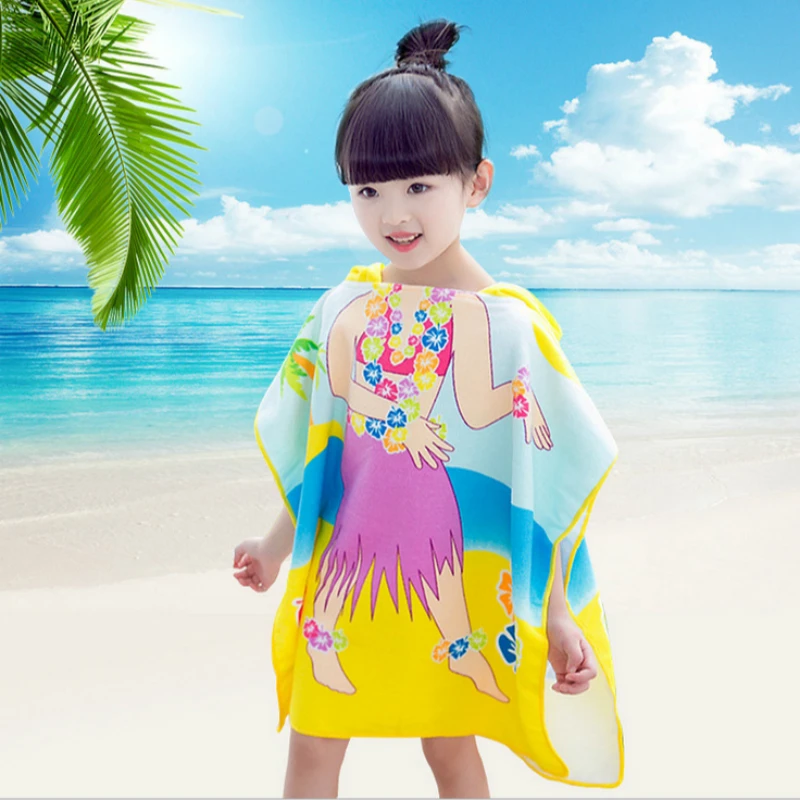 Cute Cartoon Hooded Children's Beach Towel Robes Portable Printed Unisex Animal Pattern Children Sw