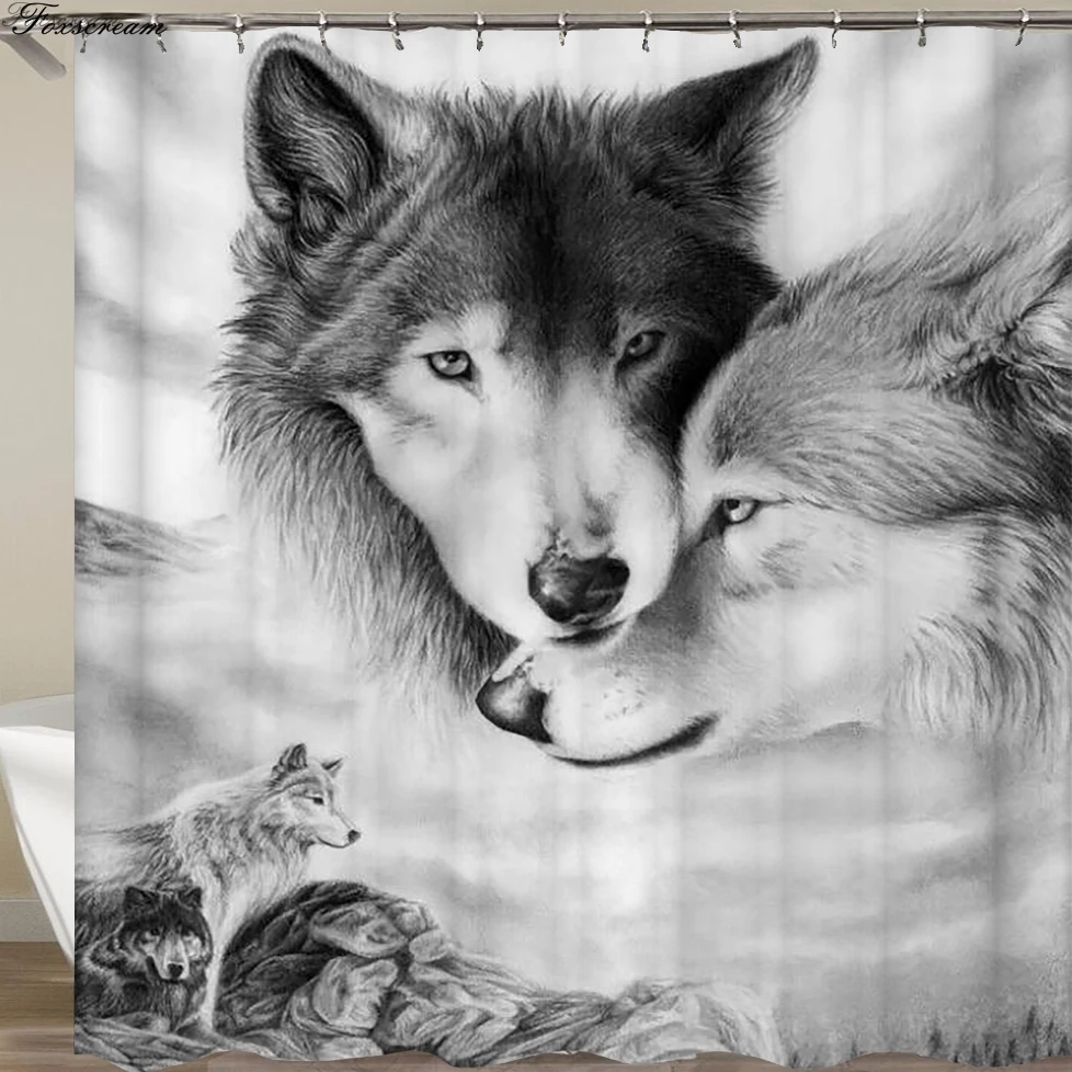 Review Top Wolf Bathroom Shower Curtain rideaux new waterproof bathroom curtains bath shower curtains fabric 3