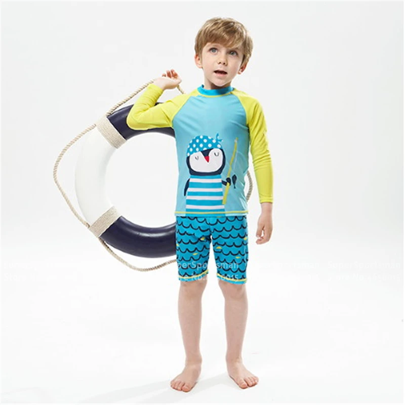 Boys Girls Cartoon One Piece Swimsuit Baby Rashguard Kids Surf Swimwear Children Anti-UV Bathing Su